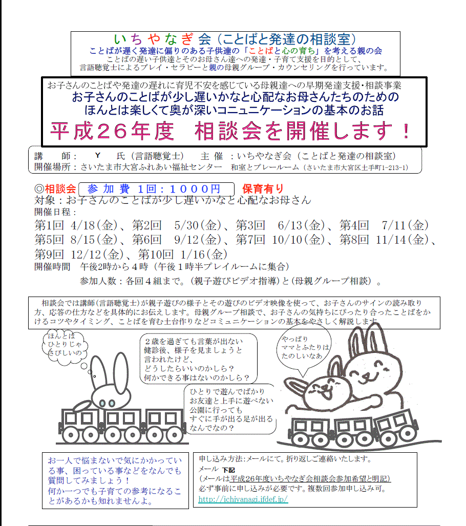 いちやなぎ会(ことばと発達の相談室)平成26年度相談会参加申し込み書