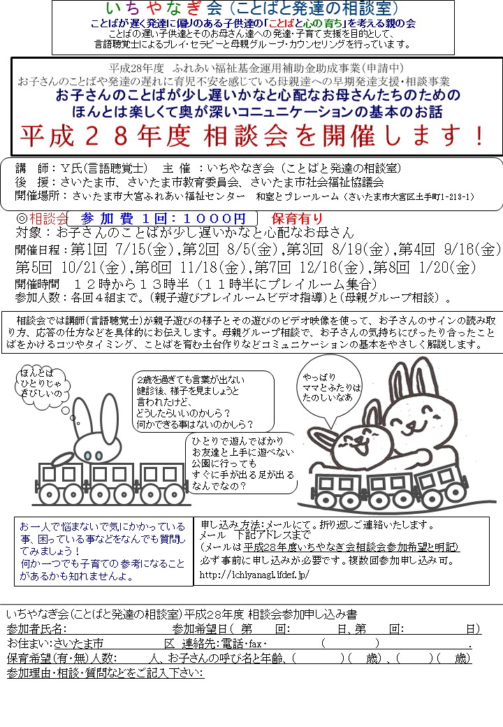 いちやなぎ会(ことばと発達の相談室)平成27年度相談会参加申し込み書